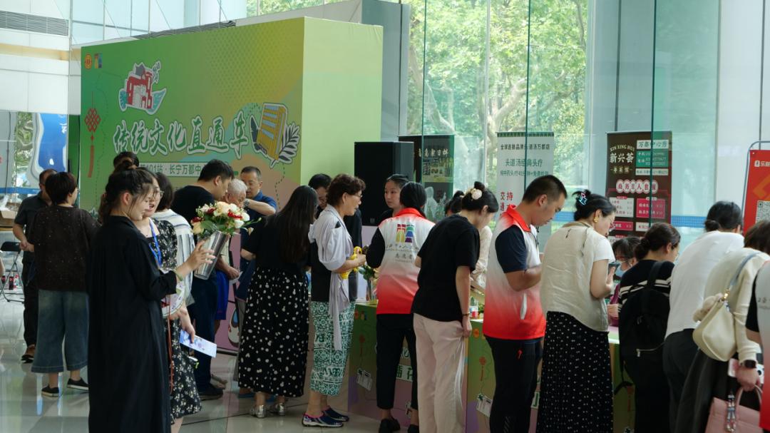 大廳另一側(cè)的文化市集同樣人氣火爆,雅致的插花藝術(shù)、質(zhì)樸精妙的手工竹編畫、治愈人心的禪意小花瓶等眾多傳統(tǒng)文化項(xiàng)目展臺(tái),吸引著過(guò)往市民駐足體驗(yàn)。面對(duì)不斷前來(lái)的人群,展臺(tái)前的老師們不停指導(dǎo)創(chuàng)作過(guò)程、講解相關(guān)知識(shí),讓大家在動(dòng)手制作中深入了解中華優(yōu)秀傳統(tǒng)文化。