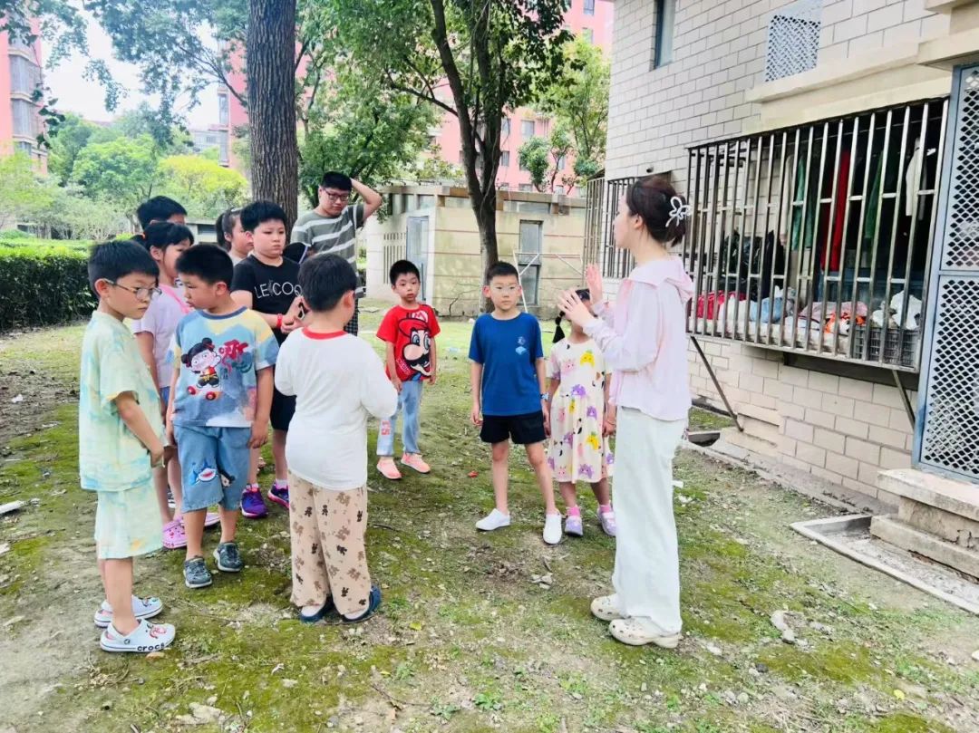 這是楊浦區(qū)婦兒工委辦“兒童 + 參與”項(xiàng)目暑期實(shí)踐活動(dòng)的現(xiàn)場(chǎng),“小參事”們討論的重點(diǎn),是如何把眼前這片略顯單調(diào)的綠地,改造成一個(gè)充滿童趣和生機(jī)的社區(qū)新角落。