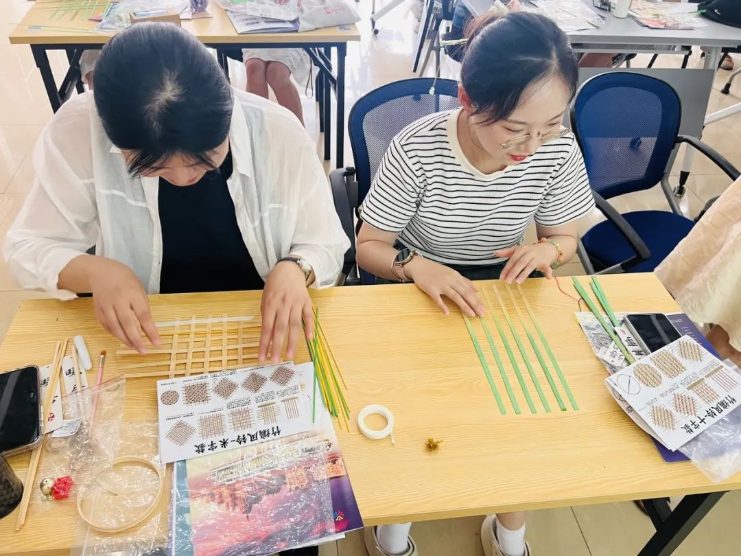 活動現(xiàn)場,桌上整齊擺放著竹編框架、彩色絲線、小鈴鐺、天然裝飾物等制作材料。指導老師拿起材料一一展示,并向大家詳細介紹了制作竹編風鈴的思路和基本步驟。老師說道:“不同形狀的基底,會賦予風鈴不同的氣質,可圓可方、可高可扁,大家可以盡情發(fā)揮創(chuàng)意,制作出屬于自己的風鈴?!?/p>