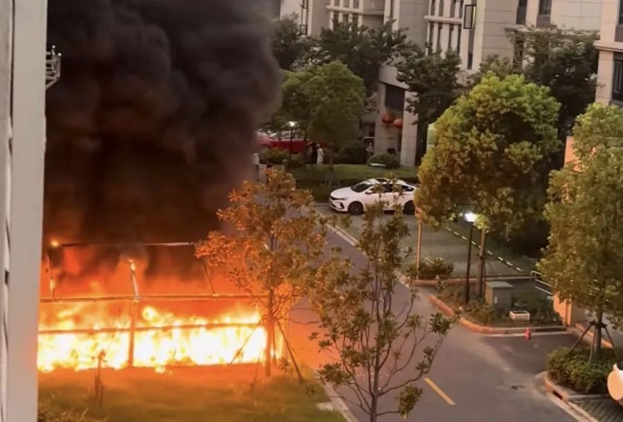 據(jù)媒體報道,有小區(qū)居民稱,聽到異響聲后起床查看,發(fā)現(xiàn)車棚已陷入一片火海,現(xiàn)場黑煙滾滾,便隨即撥打119報警。