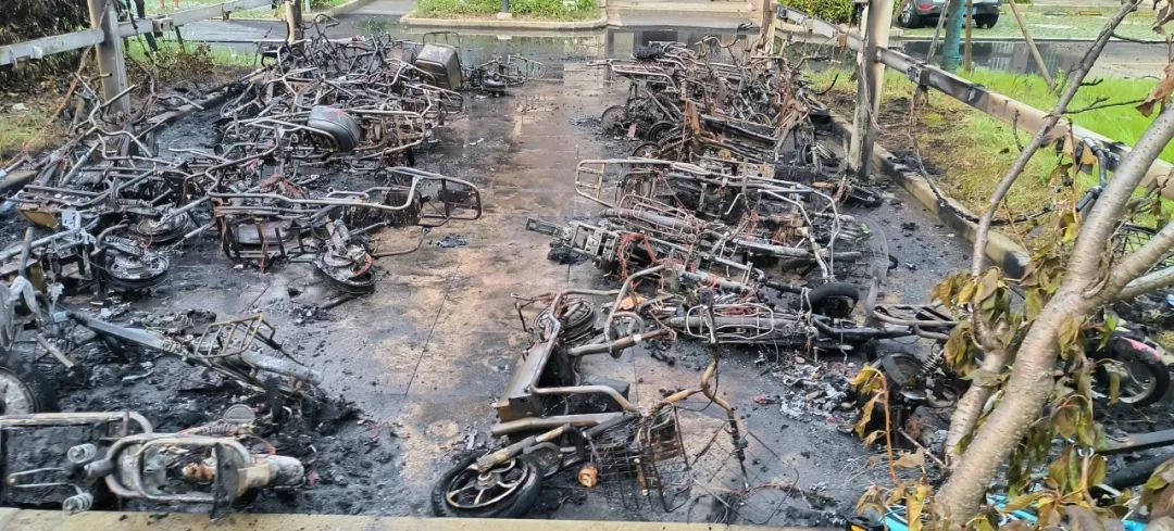 此次事故殃及周邊的12輛車,共造成13輛電動自行車損毀,所幸撲救及時,未造成人員傷亡。
