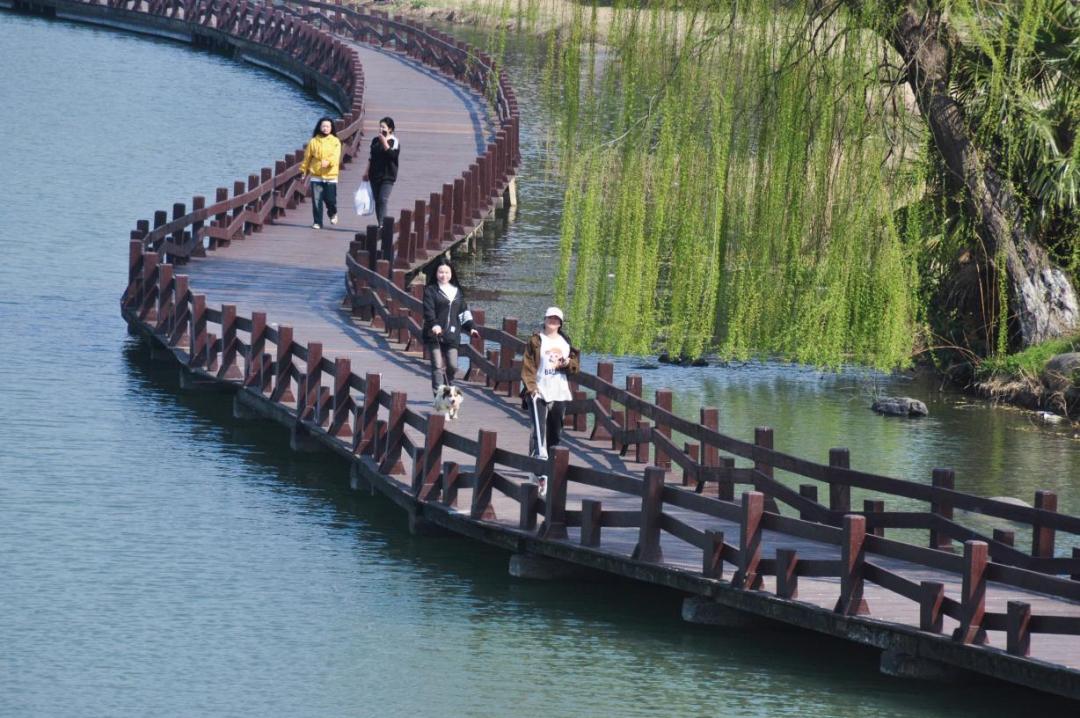綠野仙蹤之旅:沿著南大港的木質(zhì)棧道漫步,四季都有鮮花相伴,鳥(niǎo)鳴清脆動(dòng)聽(tīng)。暮春初夏,香樟和柳樹(shù)掩映下的河道寧?kù)o而雅致;秋末冬初,水杉染紅,隨手一拍就是森系大片。