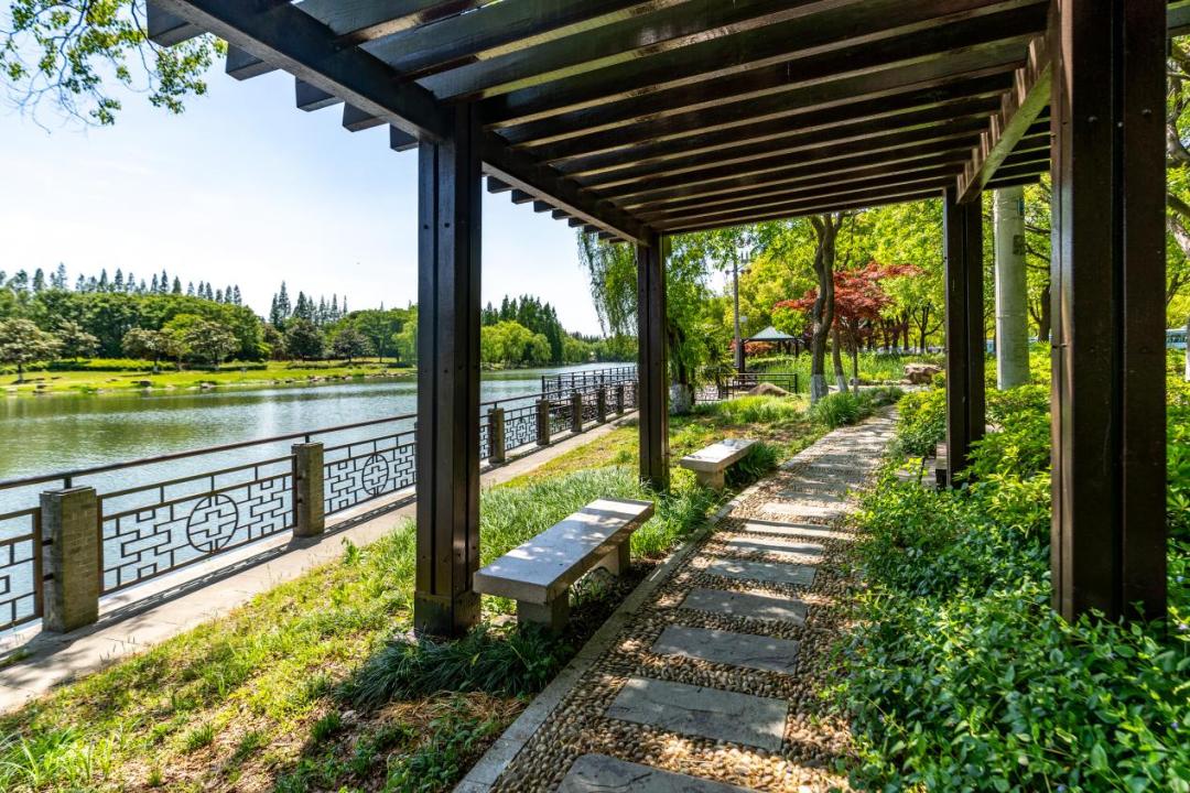 47米寬的河面倒映著廊橋和棧道,兩岸綠地率達(dá)85%。2020年整治后,這里重現(xiàn)了“水清岸綠、魚(yú)翔淺底”的江南水鄉(xiāng)韻味。