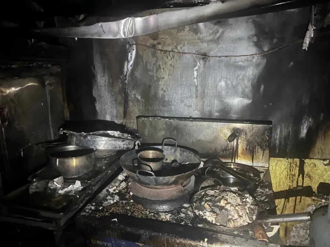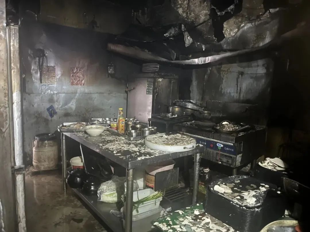 火災(zāi)撲滅后,經(jīng)初步勘驗和詢問當(dāng)事人得知,起火原因是油鍋長時間加熱,導(dǎo)致鍋內(nèi)油溫過高?;艁y中,店主覃某為了滅火往鍋中倒水,這使得火勢迅速擴(kuò)大,進(jìn)而引燃了上方的油煙管道及廚房吊頂。于是他趕緊呼救,并撥打了119報警。所幸救援及時,沒有造成人員傷亡。此次火災(zāi)過火面積約8平方米,直接經(jīng)濟(jì)損失約4000余元人民幣。