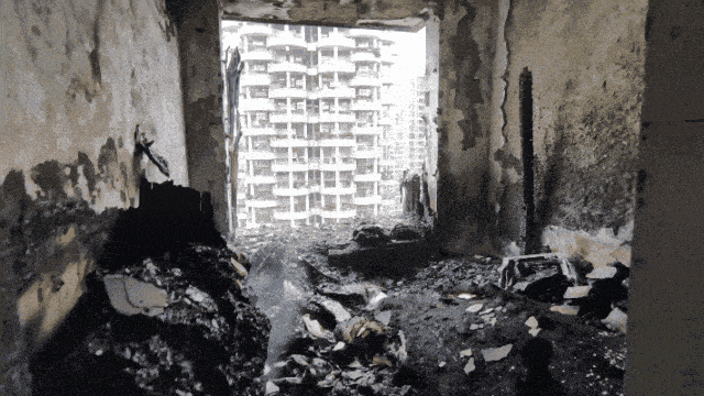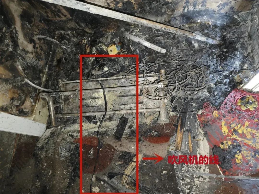 經(jīng)過(guò)緊張救援,明火很快被撲滅。但現(xiàn)場(chǎng)可見(jiàn)吹風(fēng)機(jī)已經(jīng)燒成灰燼,毛巾架、衣架等家居物品均被燒毀,墻體也因高溫和火焰炙烤而破損。