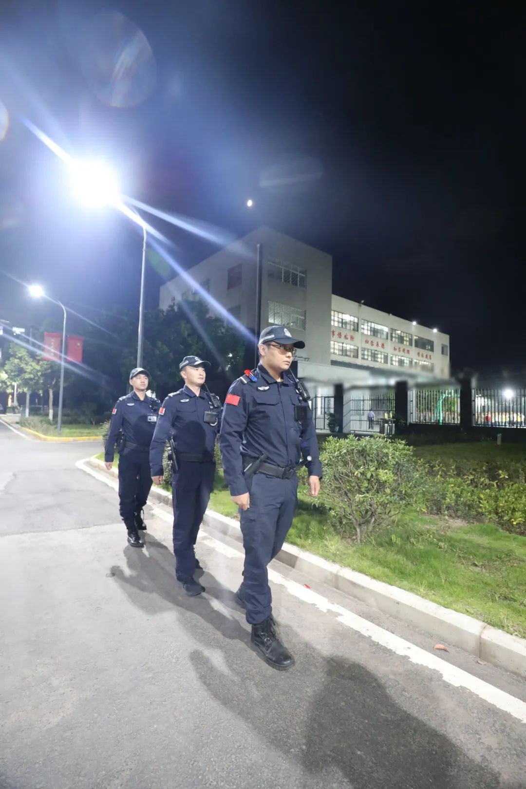 子夜巡查,用腳步丈量責(zé)任的刻度。手電光柱切開濃稠的夜色,巡邏道在高墻內(nèi)延伸,腳步是唯一的刻度,丈量著平安的距離。警服后背的汗?jié)n,在路燈下暈開深色的地圖。高墻沒有黑夜。