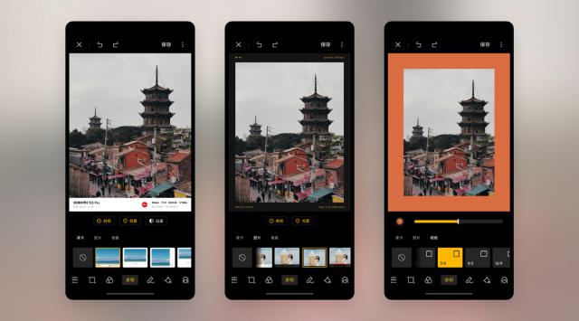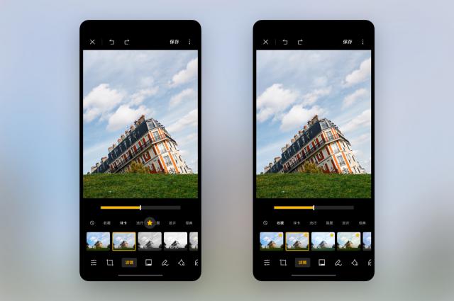 濾鏡功能小升級,底部的濾鏡預(yù)覽選項(xiàng)支持顯示原圖 + 濾鏡的效果,用戶可以在預(yù)覽小圖能直觀看到效果應(yīng)用的效果,同時(shí)也可以通過長按濾鏡把自己喜愛的濾鏡樣式進(jìn)行收藏。