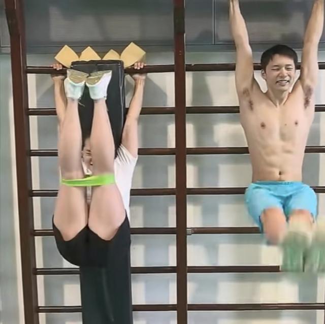 旁邊的師兄做起來非常輕松,全紅嬋看到后哈哈大笑,但自己做起來卻十分費勁,好不容易做了兩個,馬上就累得癱倒在地。