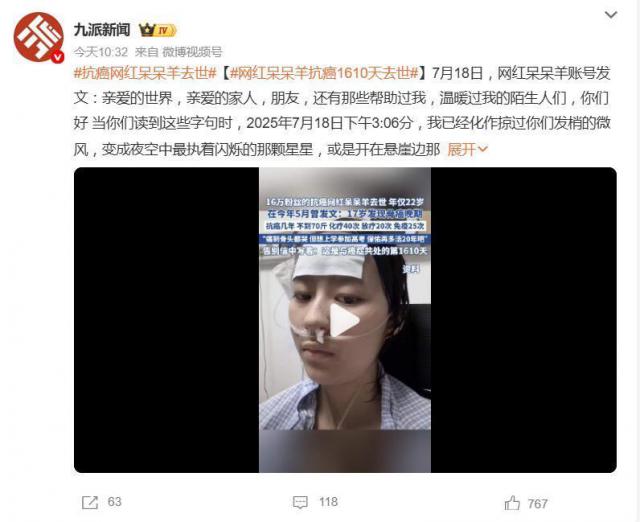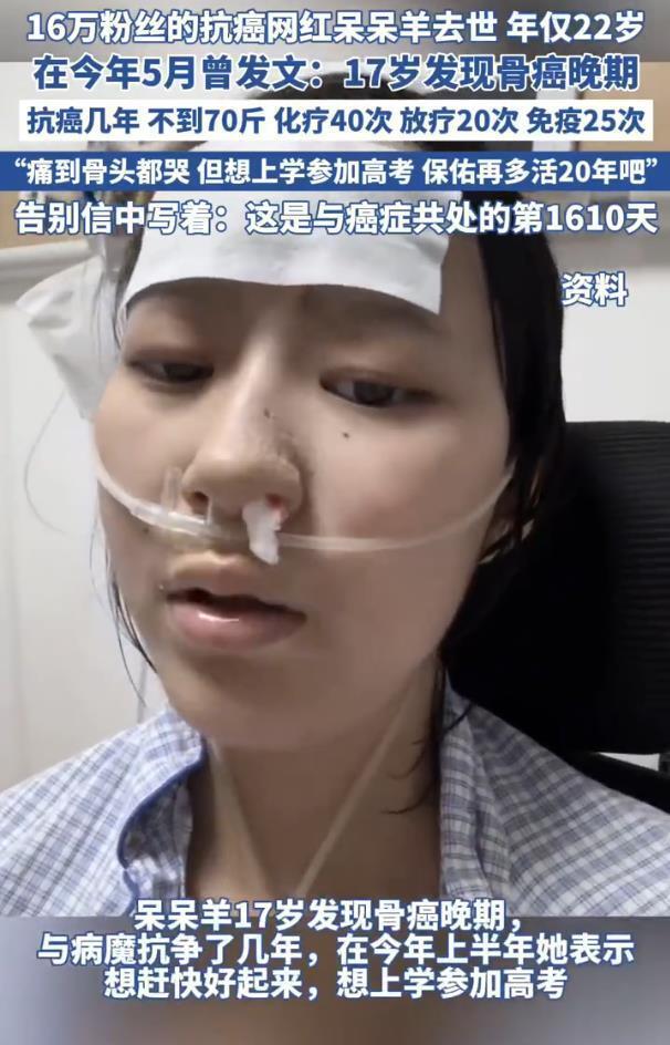 22歲抗癌網(wǎng)紅呆呆羊去世,用1610天詮釋生命的意義