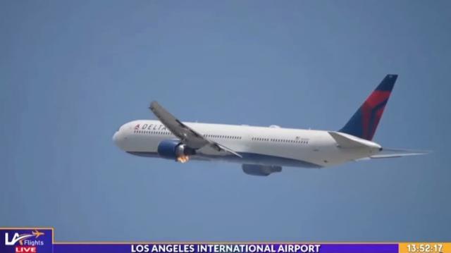 達美航空波音767客機起飛后引擎起火,緊急返航洛杉磯