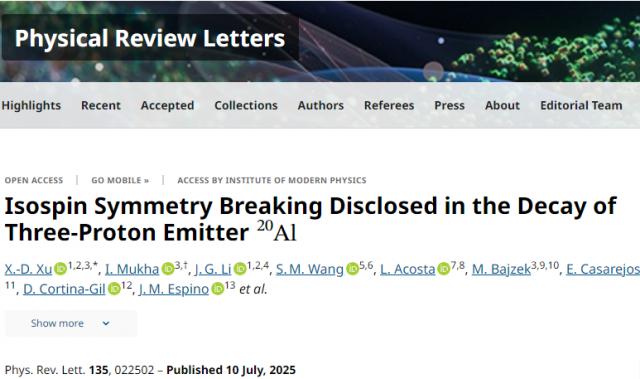 IT 之家 7 月 20 日消息,據(jù)央視新聞今日報(bào)道,中國科學(xué)院近代物理研究所的科研人員攜手德國亥姆霍茲重離子研究中心、復(fù)旦大學(xué)等國內(nèi)外合作者,在原子核的奇特衰變研究領(lǐng)域取得新突破。首次在實(shí)驗(yàn)中觀測到新核素鋁 - 20,還發(fā)現(xiàn)它通過稀有的三質(zhì)子發(fā)射模式進(jìn)行衰變。相關(guān)研究成果于 7 月 10 日在學(xué)術(shù)期刊《物理評論快報(bào)》(PRL)發(fā)表。