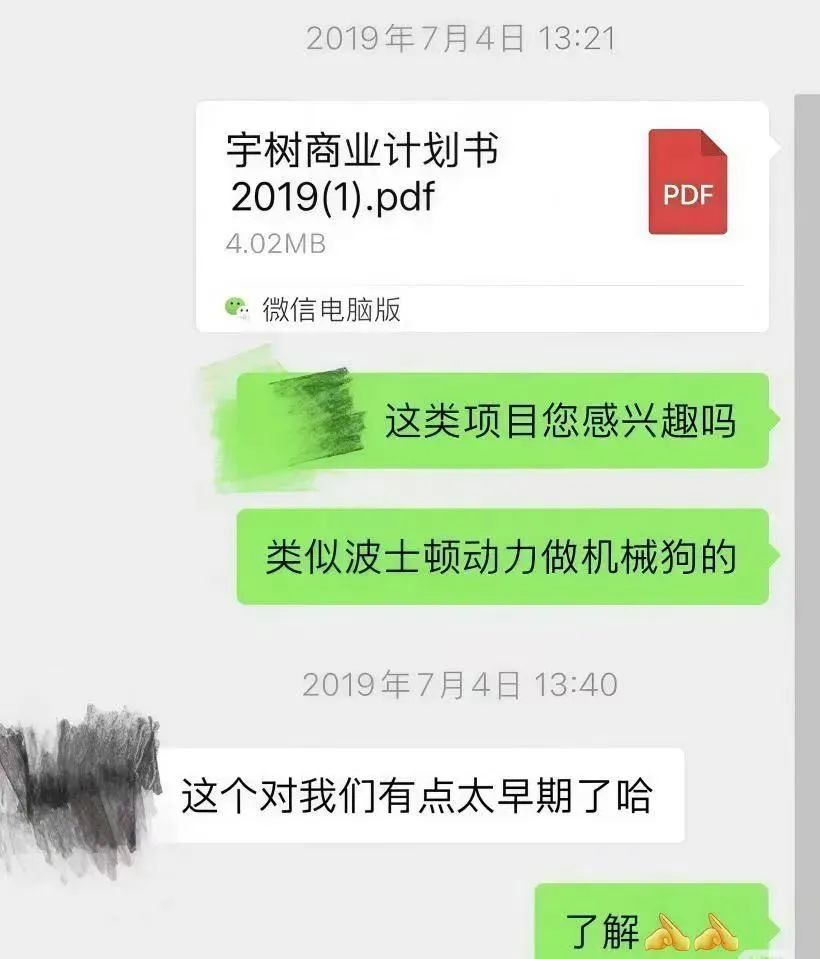 正如一份流傳甚廣的聊天截圖里,早年VC拒絕了宇樹的BP,理由是太過早期。