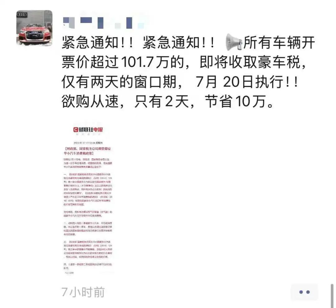 而且政策發(fā)布后幾乎沒有緩沖期,新規(guī)定自2025年7月20日起執(zhí)行,想要買豪車的朋友,要趁這兩天趕緊下手了。