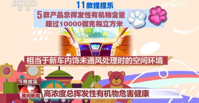 結果顯示,11款“捏捏樂”都檢測到了一定濃度的總揮發(fā)性有機物,包括甲醛、甲苯、二甲苯。