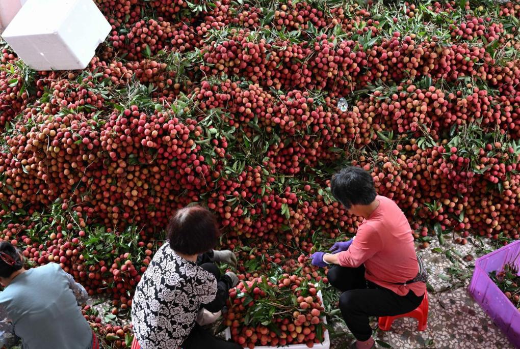 廣東茂名高州市分界鎮(zhèn),果農(nóng)分揀荔枝鮮果。新華社記者 鄧華 攝