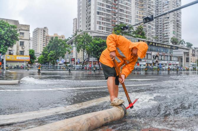 受臺(tái)風(fēng)“韋帕”影響,??诔掷m(xù)降雨天氣,385名“小黃人”在風(fēng)雨中堅(jiān)守,用行動(dòng)生動(dòng)詮釋了“水不退,人不退”的責(zé)任擔(dān)當(dāng)。