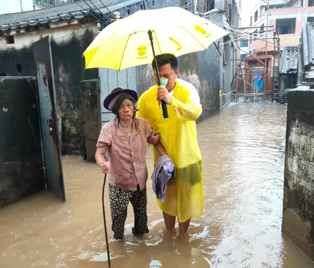 龍華區(qū)大同街道工作人員轉(zhuǎn)移群眾。