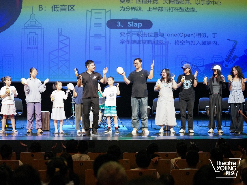 7月20日下午,首場“夏日納涼”活動(dòng)在YOUNG劇場主劇場盛大開啟。朱宗慶打擊樂團(tuán)的專業(yè)樂手受邀來到現(xiàn)場,為大家呈現(xiàn)了《鼓脈·山?!分黝}表演,還與觀眾進(jìn)行了互動(dòng)?,F(xiàn)場大多是家長帶著孩子一同前來,門口擺滿了冰鎮(zhèn)飲料,搭配著精彩的現(xiàn)場演出,讓這個(gè)夏日的下午格外“清涼”。