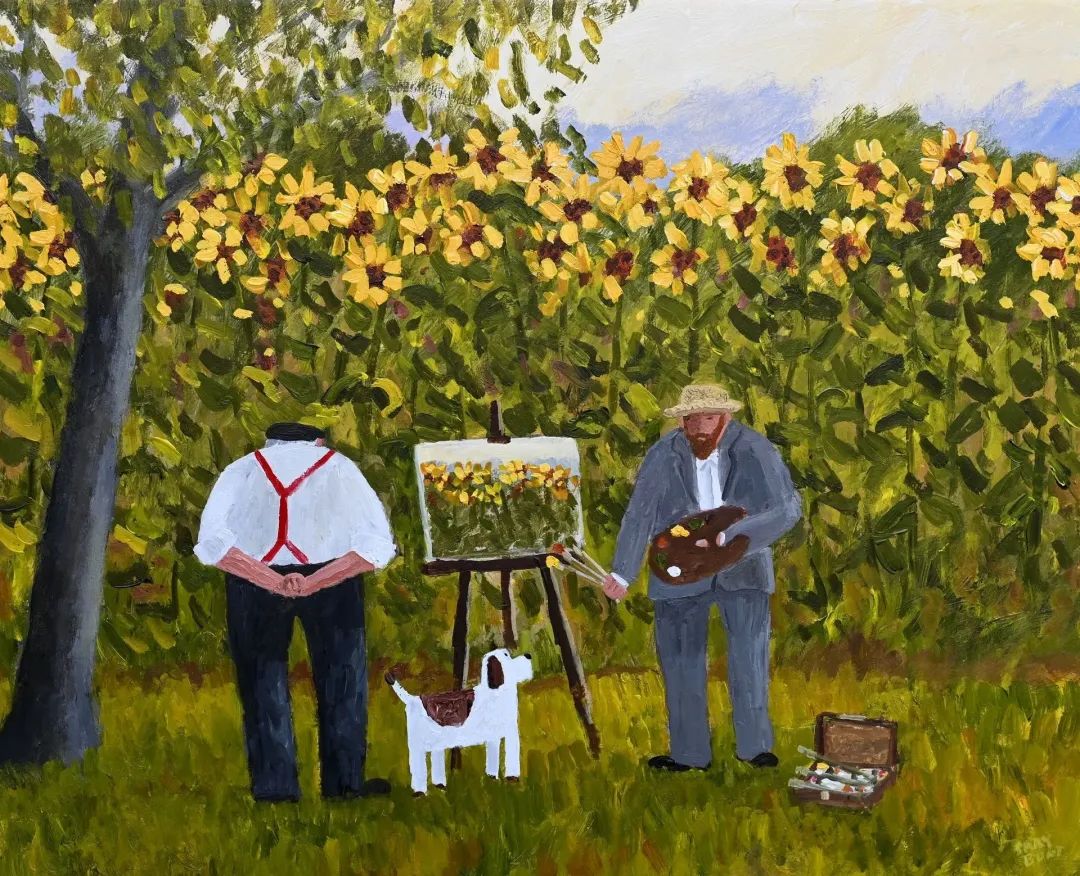 加里·邦特繪畫(huà)的主題多為英國(guó)郊區(qū)和鄉(xiāng)村的日常風(fēng)景,整體色調(diào)十分溫柔,畫(huà)中常常有可愛(ài)的狗狗。欣賞他的作品,能讓人感受到純粹的快樂(lè)與治愈,畫(huà)面?zhèn)鬟f出的平靜和幸福,如同溫暖的懷抱,將人緊緊包裹。