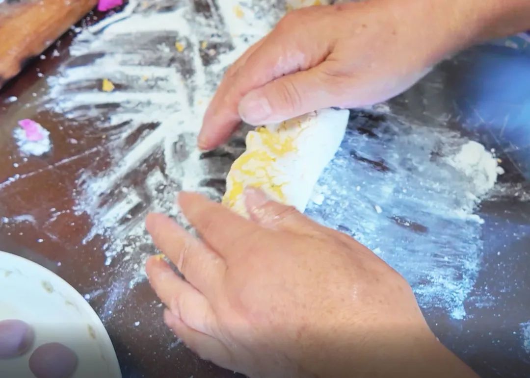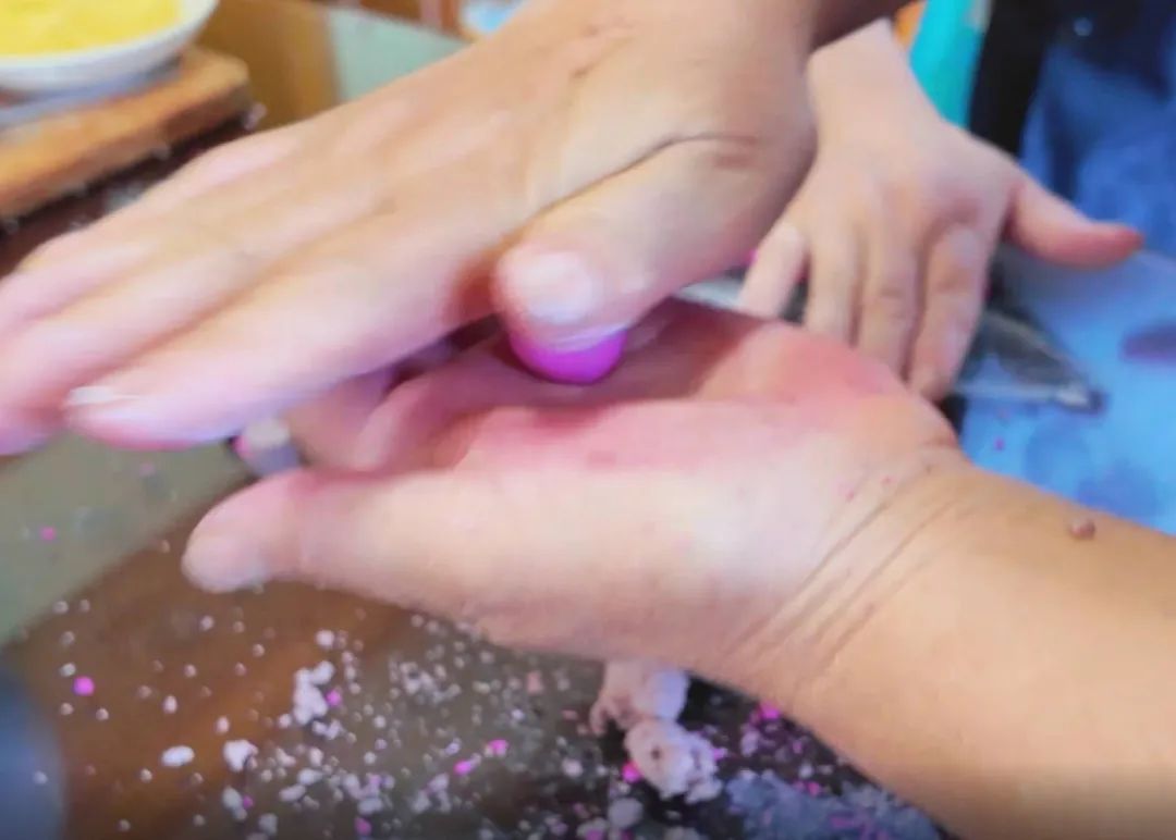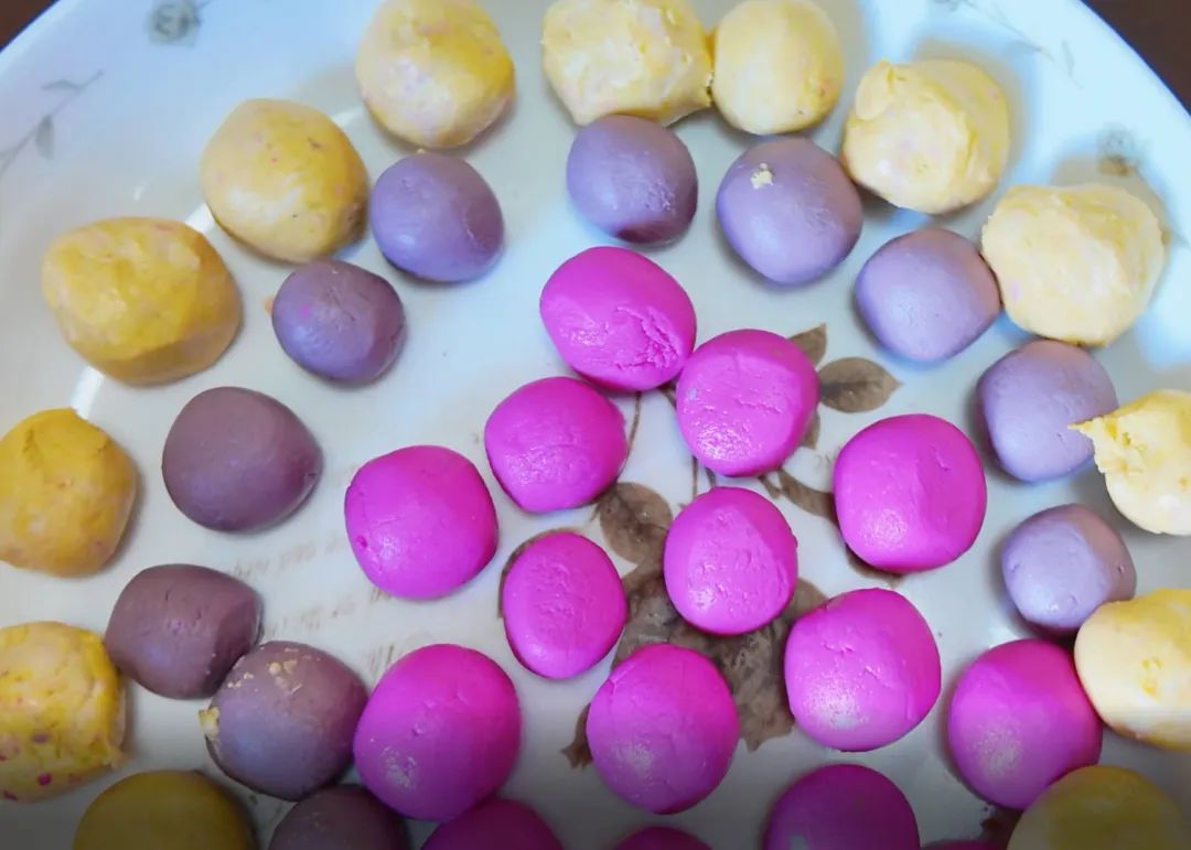 軟糯的圓子呈現(xiàn)出三種顏色相互交織的美妙景象。