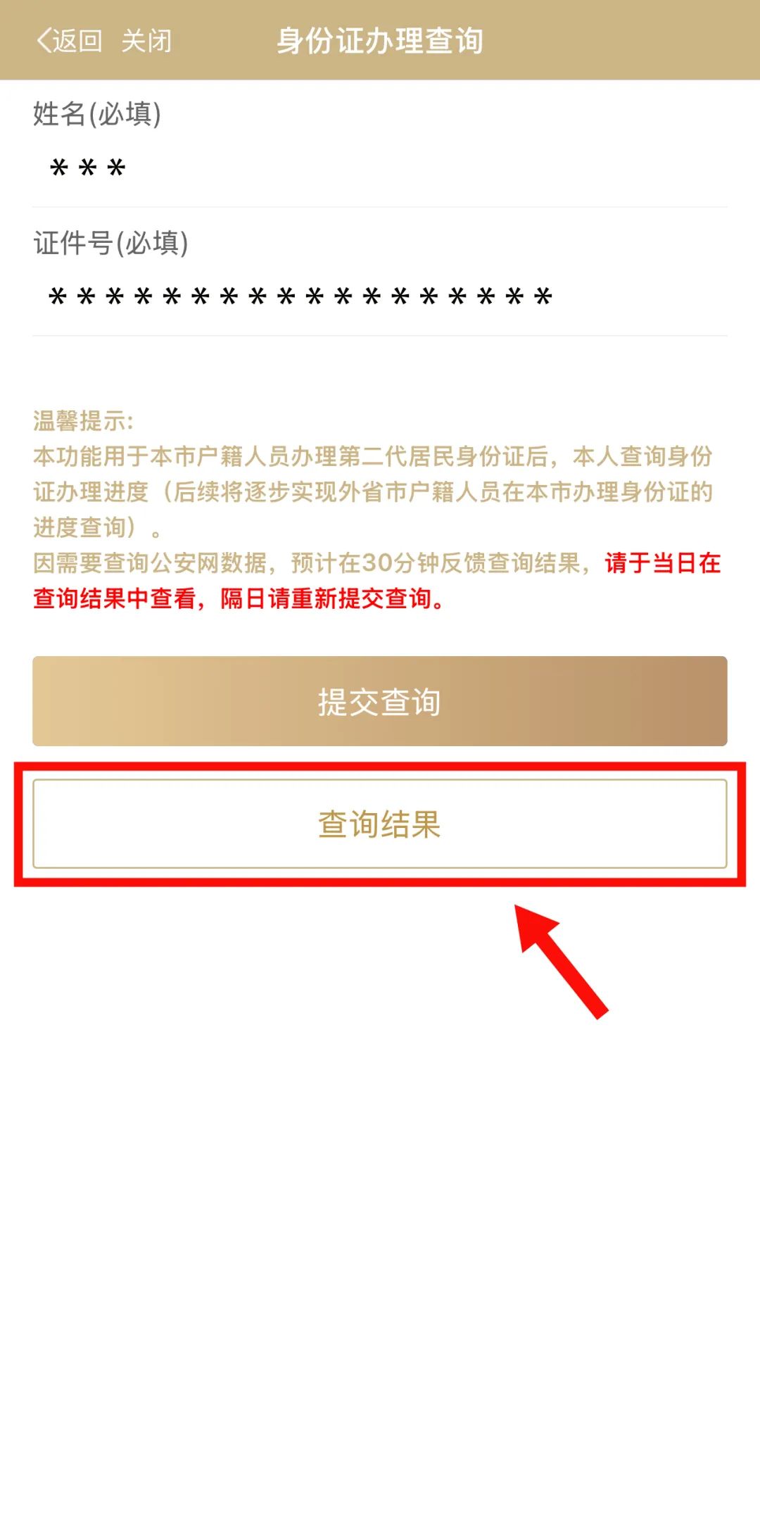 本市戶籍居民申請身份證后,能借助“身份證辦理查詢”服務,實時在線追蹤辦理狀態(tài)。