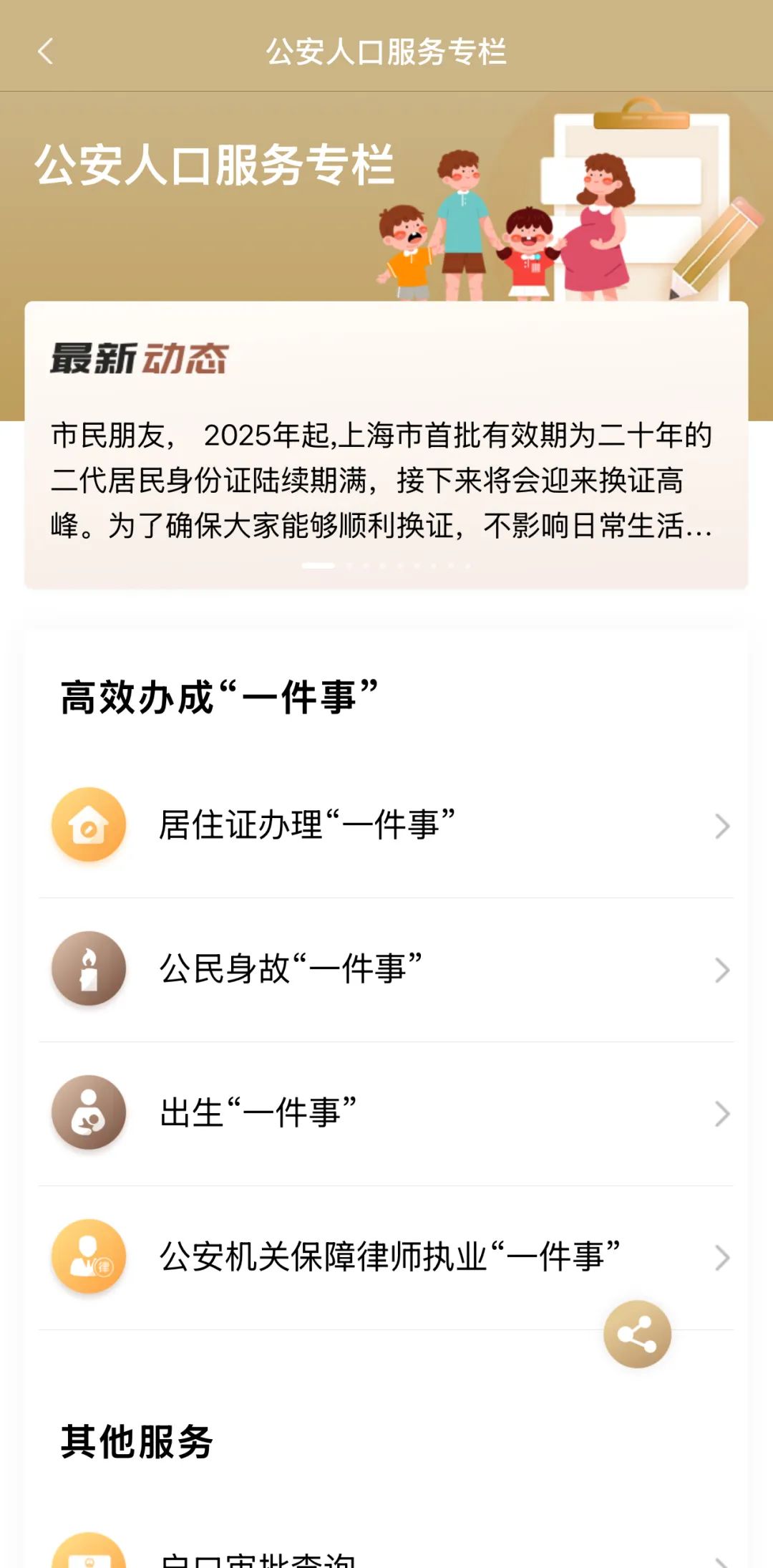 打開“隨申辦市民云”(App/微信小程序/支付寶小程序),在首頁搜索“公安人口服務專欄”。