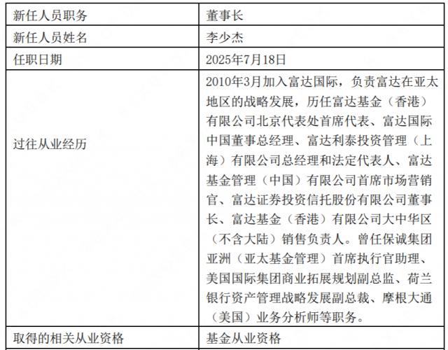 富達(dá)基金換帥:黃小薏卸任,李少杰接任董事長(zhǎng)