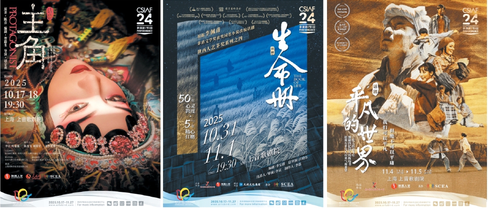 “茅獎(jiǎng)系列”作品《主角》《生命冊》《平凡的世界》《白鹿原》以及“陳彥三部曲”《星空與半棵樹》五部大戲?qū)⒃谏弦舾鑴≡毫料?。圖為部分演出海報(bào)。