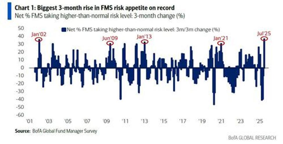 然而,美國(guó)銀行首席投資策略師Michael Hartnett卻發(fā)出了罕見的警告。他指出,美銀所有賣出信號(hào)均已觸發(fā),在標(biāo)普500再度逼近新高的情況下,短期回調(diào)風(fēng)險(xiǎn)大幅增加。目前,全球資金持續(xù)流入美國(guó)股票和高收益?zhèn)?,市?chǎng)已進(jìn)入技術(shù)性“危險(xiǎn)區(qū)”。