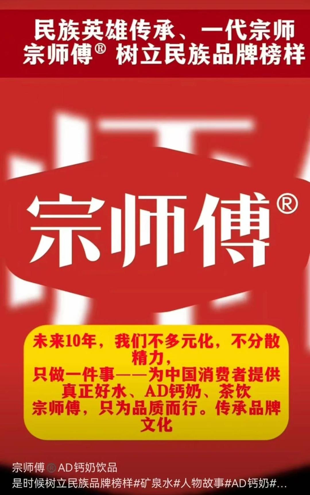 于是,深圳卓氏回去后改名為“世界大泉生態(tài)飲用水有限公司”。隨后,還找人生產(chǎn)了一批“宗師傅礦泉水”,并聲明未來只專注于礦泉水和AD鈣奶,似乎在嘲笑宗師傅飲料公司什么都想做,卻不知道自己的定位。