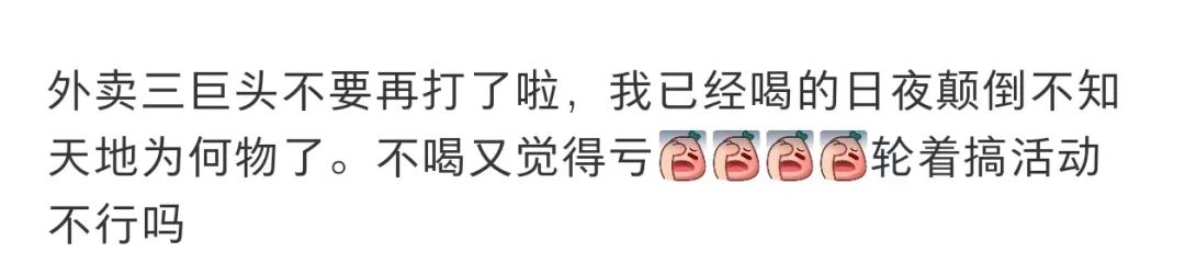 “說得直白點(diǎn),我們喝下的是平臺投資人的錢+商家的利潤+外賣員的體力+食品質(zhì)量的妥協(xié)?!?/p>
