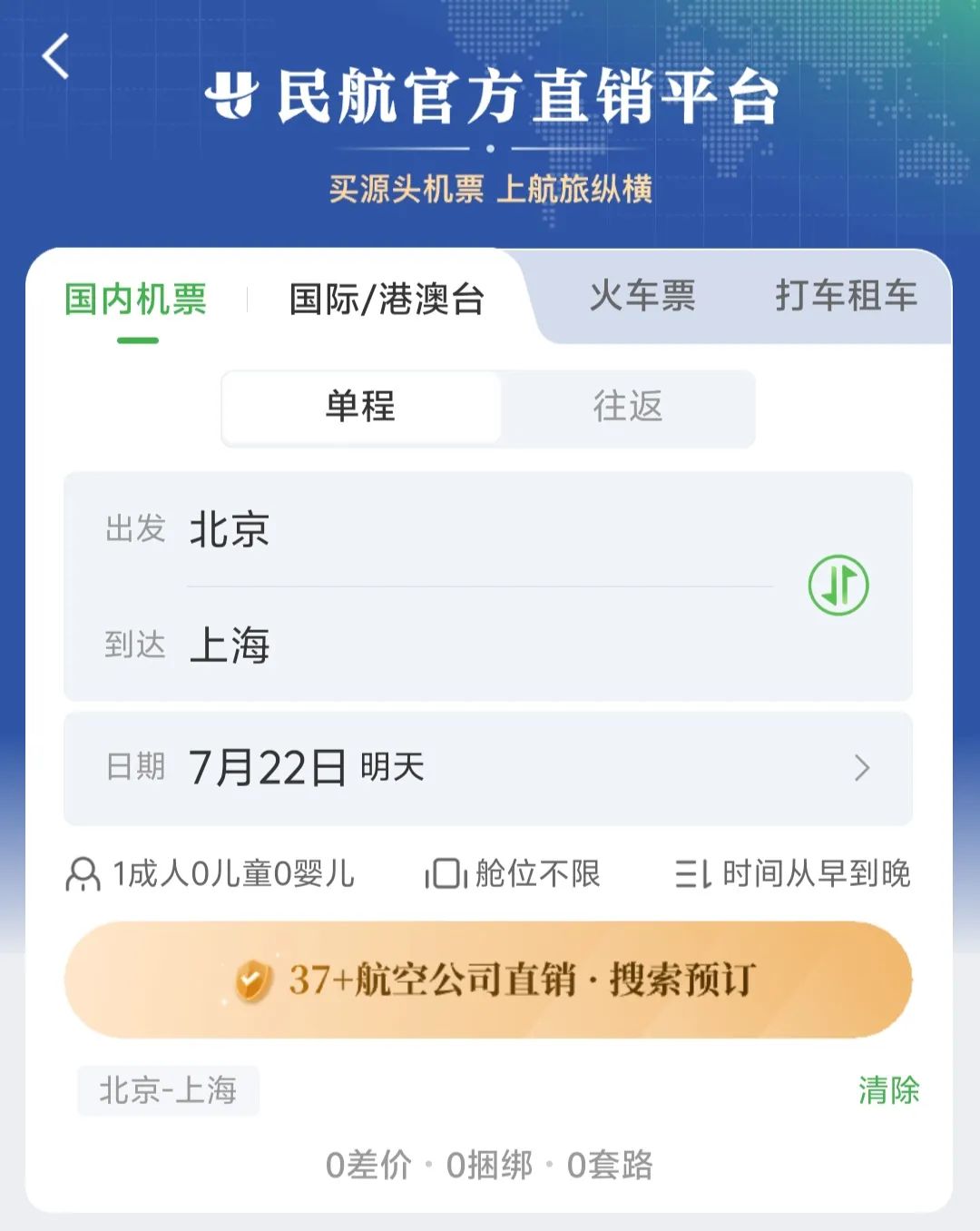 近日,有網(wǎng)友發(fā)現(xiàn),航旅縱橫APP上出現(xiàn)了“民航官方直銷平臺(tái)”頁(yè)面,宣稱“0差價(jià)、0捆綁、0套路,37+航空公司直銷”。