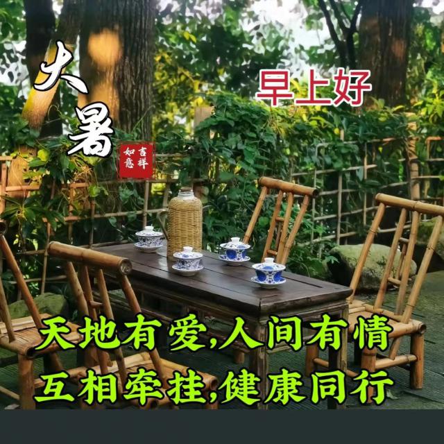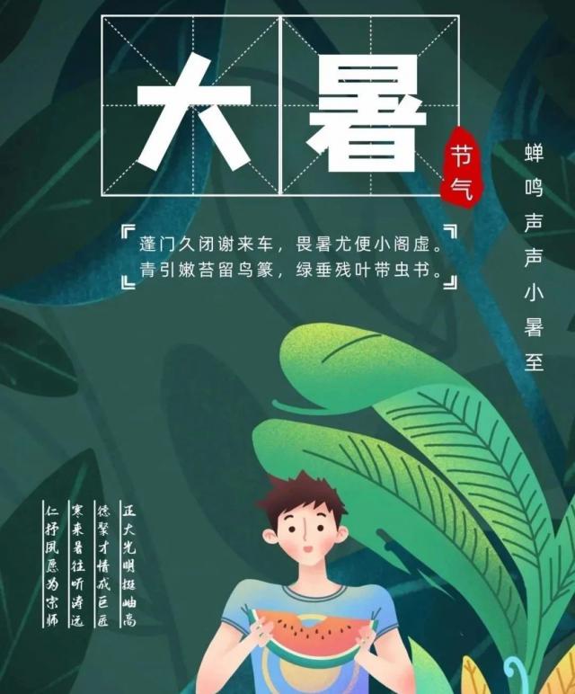 大暑正值一年中最熱的時候,要謹防中暑。大暑時,飯要吃好,小暑吃黍,大暑吃谷。保持開心最重要,身體要舒展,心情要舒坦。盼著天降甘霖消暑氣,讓你清涼解煩悶,愿你幸福長久。