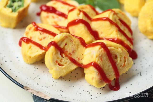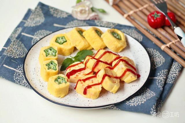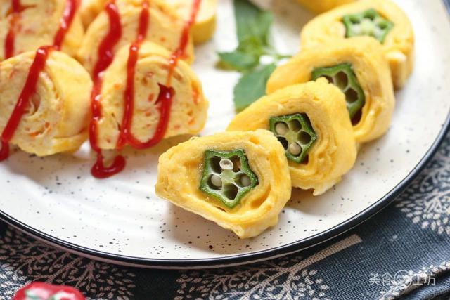 而進階版的雞蛋做法在造型和口感上更講究些,蛋皮反復(fù)裹卷,層層緊貼,中間可以夾入秋葵、土豆絲、香腸,顏色鮮亮,營養(yǎng)豐富。