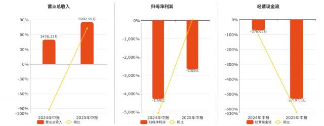 截至2025年6月30日,*ST聆達(dá)營(yíng)業(yè)總收入達(dá)5992.99萬元,而歸母凈利潤(rùn)為 -1.05億元。經(jīng)營(yíng)活動(dòng)現(xiàn)金凈流入為 -2719.05萬元,相較于去年同報(bào)告期減少了2343.02萬元。