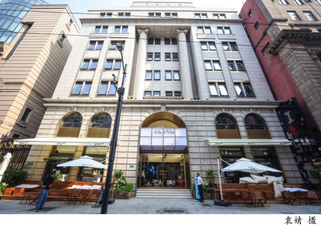 九江路沿線的建筑大多建于上世紀初,這里金融機構眾多,被譽為“中國的華爾街”。與其他馬路相比,九江路的人行道較窄。但九江路69號的古象大樓比較特殊,建造時自行向建筑紅線后撤了一部分,這為外擺位的設置留下了想象空間。