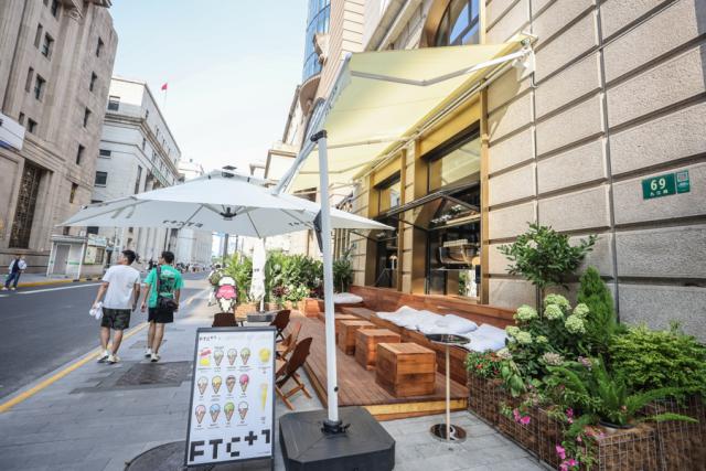 這家名為FTC + 1的咖啡廳,是外灘區(qū)域首個擁有外擺位的店鋪。它所在的外灘FTC大樓,是新近啟用的優(yōu)質(zhì)內(nèi)容創(chuàng)作者集聚載體。