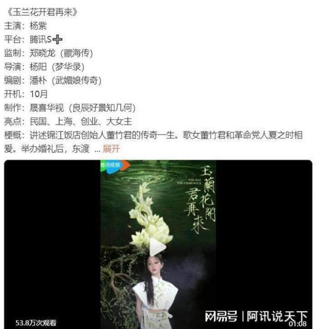 網(wǎng)傳楊紫下一部劇將是《玉蘭花開君再來》。該劇講述了少女阿媛因家庭貧困,被家人賣到長三樓做歌女,陰差陽錯下遇到夏之時并相愛?;楹?,阿媛獲得去外國留學的機會,并改名為“董竹君”。