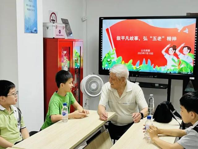 活動(dòng)開(kāi)始,一場(chǎng)特別的紅色微課堂開(kāi)啟了精彩之旅。此次課堂邀請(qǐng)了93歲的離休老干部張順祥,他為“小當(dāng)家”們深情講述自己平凡又偉大的革命人生。張老1945年投身革命,課堂上,他精神飽滿(mǎn)地回顧入黨初心和投身革命建設(shè)的歷程。從守衛(wèi)邊疆到扎根內(nèi)蒙古,他與戰(zhàn)友在艱苦歲月相互扶持、共同奮斗的往事,如畫(huà)卷般將孩子們帶入崢嶸歲月。孩子們專(zhuān)注聆聽(tīng),對(duì)革命歷史興趣濃厚,紛紛向張老提問(wèn)。老人耐心解答,用親身經(jīng)歷給孩子們上了堂生動(dòng)的愛(ài)國(guó)主義教育課,讓紅色種子在孩子們心中種下。