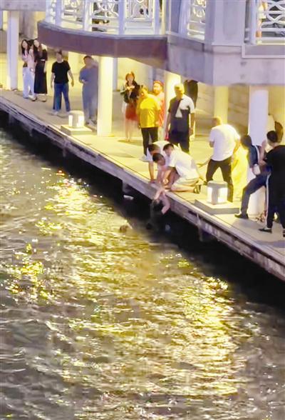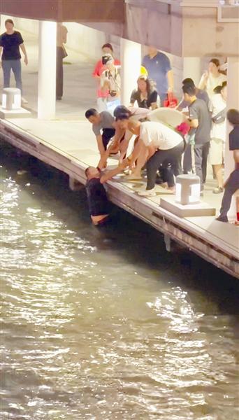“我離得非常近,起初還以為是有人跳水,順著聲音望過(guò)去才發(fā)現(xiàn)不對(duì)勁,是有人真的落水了。”