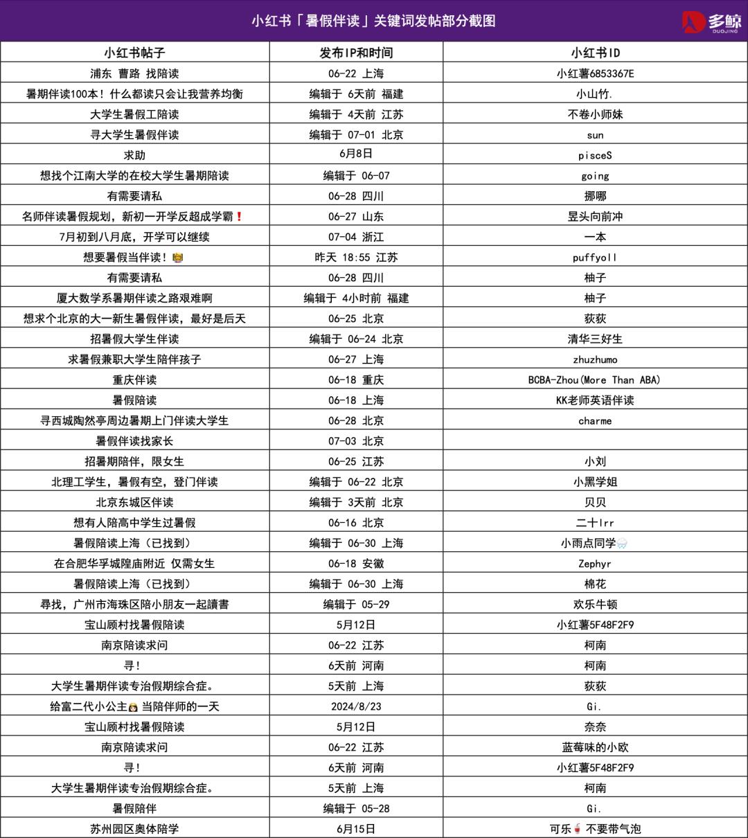 在小紅書上,「暑假伴讀」相關(guān)筆記數(shù)量迅速攀升,發(fā)帖者既有急切招募的家長,也有主動求職的大學生。當「教育內(nèi)卷」和「精細化陪伴」遇上大學生充裕的時間,一種全新的「暑期生活方式」誕生了。這種模式看似是私人事務(wù),實則蘊含著時代變化的深意——當「陪孩子長大」這件事開始被外包,我們究竟在解決什么問題,又失去了什么呢?