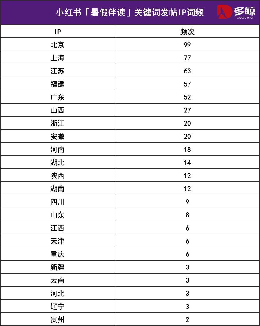 小紅書「暑假伴讀」關(guān)鍵詞發(fā)帖IP詞頻