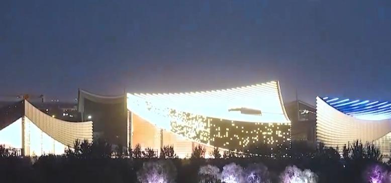 順利抵京!點亮北京萬家燈火。圖為:被來自新疆的綠電點亮的北京藝術(shù)中心