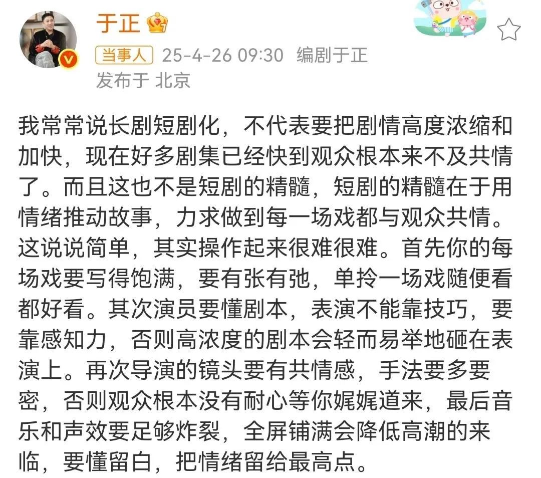 面對短劇崛起,長劇創(chuàng)作者面臨選擇:擁抱短劇邏輯還是堅(jiān)守長劇傳統(tǒng)?業(yè)界實(shí)踐表明,更可行的是辯證融合,保留長劇質(zhì)感,汲取短劇敘事效率精髓。