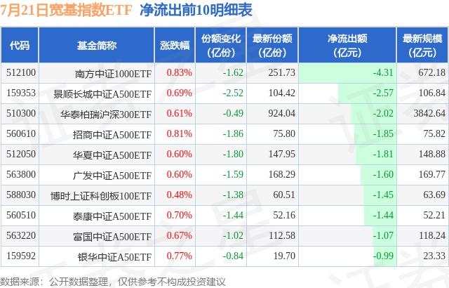 7月21日寬基指數(shù)ETF現(xiàn)23.14億元資金凈流出