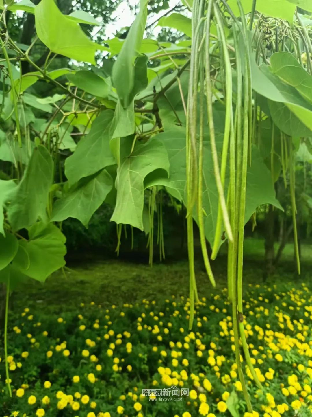 進(jìn)入盛夏,冰城一些“罕見”樹木的樹干和葉片間長出了一根根綠色的“小棍子”。原來,這是被稱為“百木之王”的梓樹結(jié)果了,在冰城也能欣賞到這種樹。阿房宮、殷墟宮殿等著名歷史建筑都少不了它的身影。