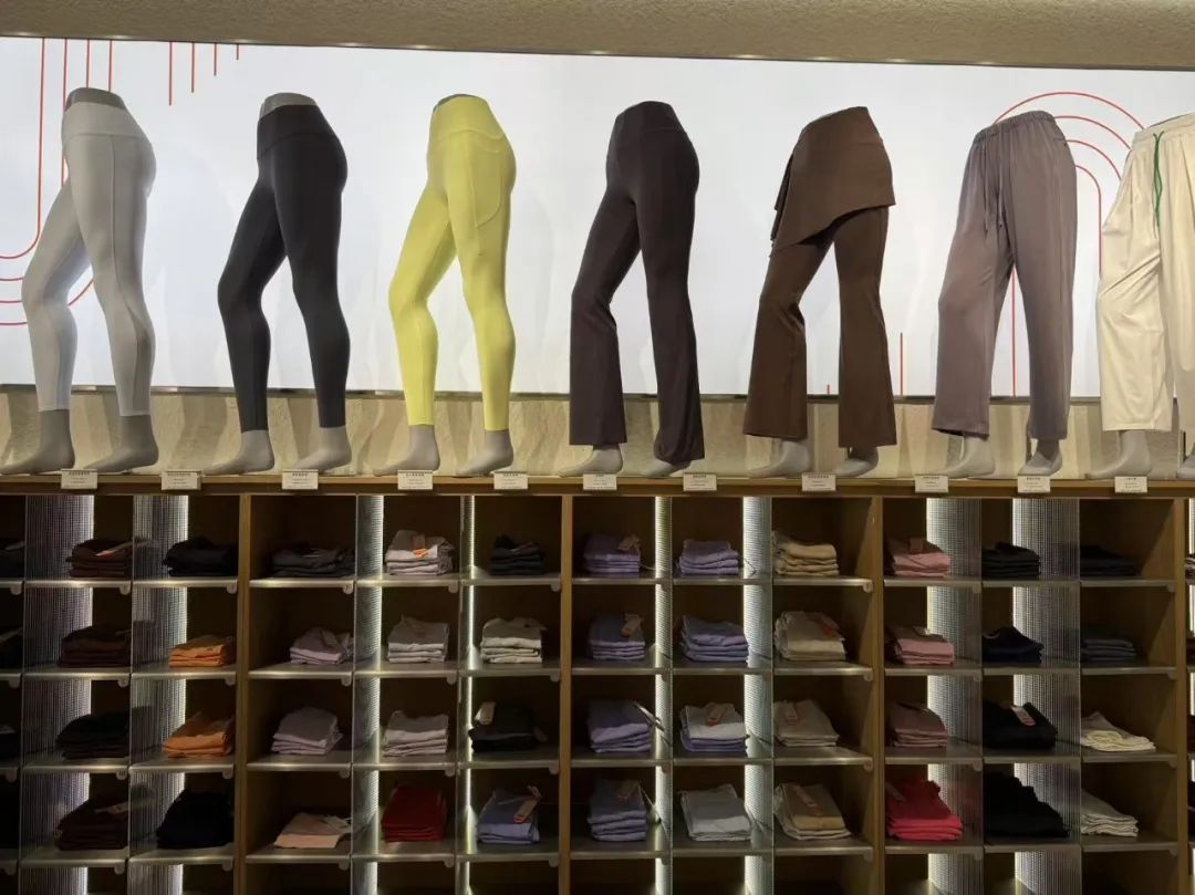 線下陳列時突出產(chǎn)品裁剪、面料等特點,已成瑜伽品牌默契