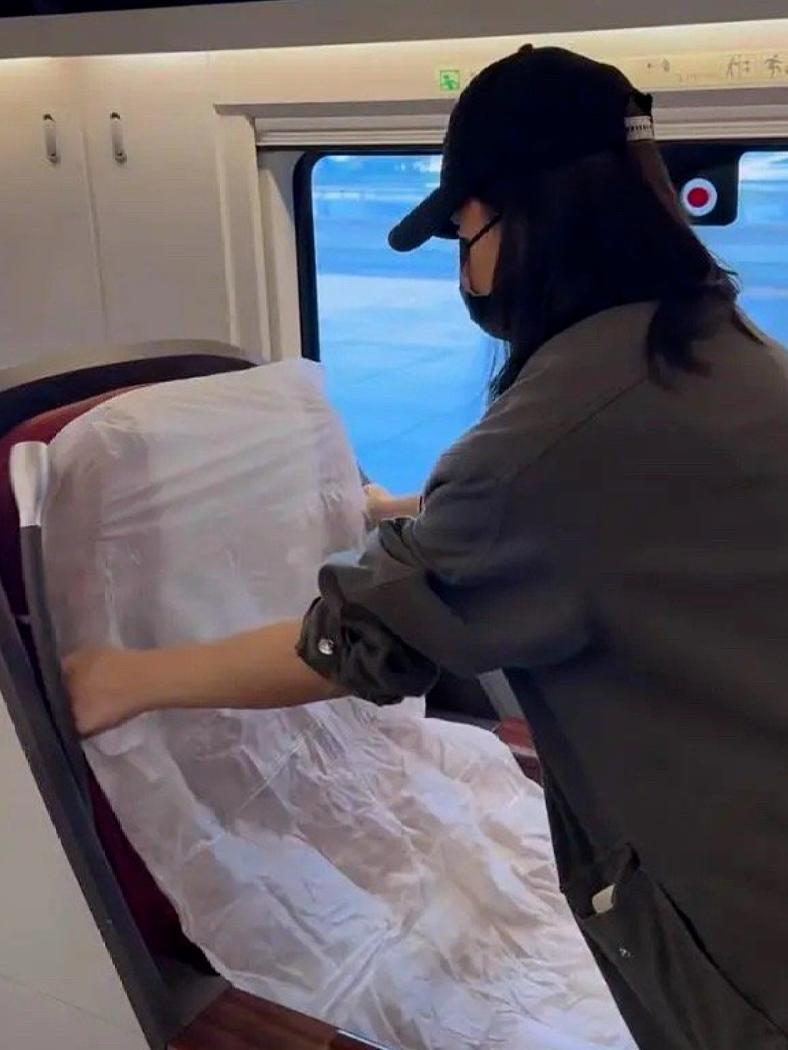 有網友發(fā)現(xiàn),女星楊子姍也曾在視頻中曬出上高鐵就套上一次性座椅套。