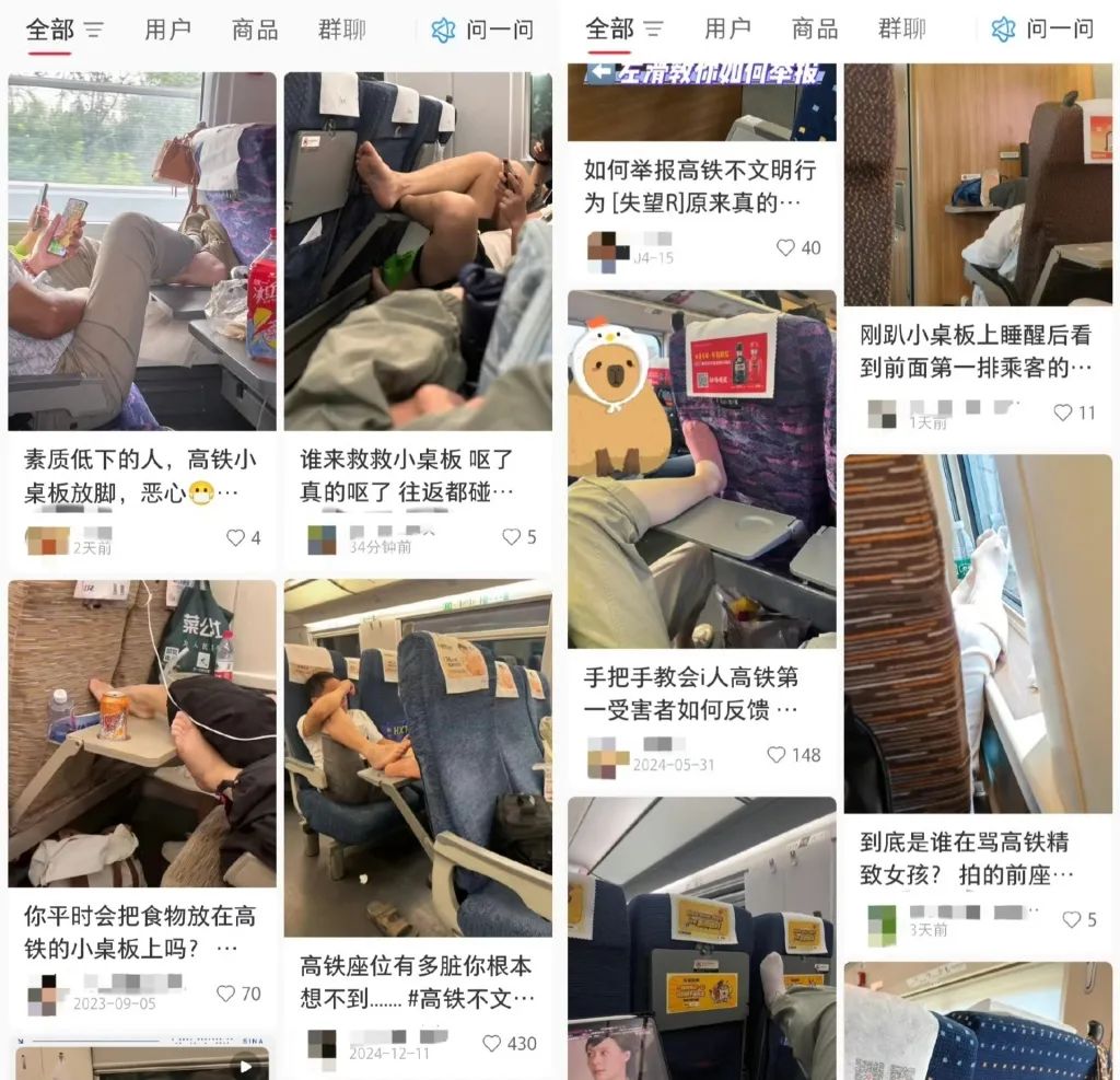 除了座椅套,一次性小桌板套也有售賣。此前,有乘客把腳搭在小桌板上,或者拖鞋直接踩高鐵座椅的報道。社媒上關于高鐵上“腳放小桌板”等不文明行為的討論也很多,不少網友直言“腳味兒太沖,一想到桌板上可能踩過腳就不敢吃東西”“明明有二維碼反饋,為啥沒人處理?”