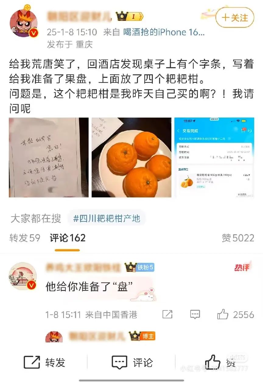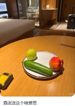 前兩天,有用戶在社交平臺(tái)發(fā)了一張歡迎水果的照片,配文“酒店送我這個(gè)啥意思”。照片里是蘋果 + 梨,外加一根水果黃瓜,這配置讓人不禁猜測(cè)潛臺(tái)詞是不是“吃瓜!果然離了?”這也引發(fā)了很多網(wǎng)友的吐槽和曬圖。有網(wǎng)友說(shuō)“哈哈,還不如不送”“好敷衍啊”等,還有網(wǎng)友曬出自己遇到的用心的歡迎水果照片。